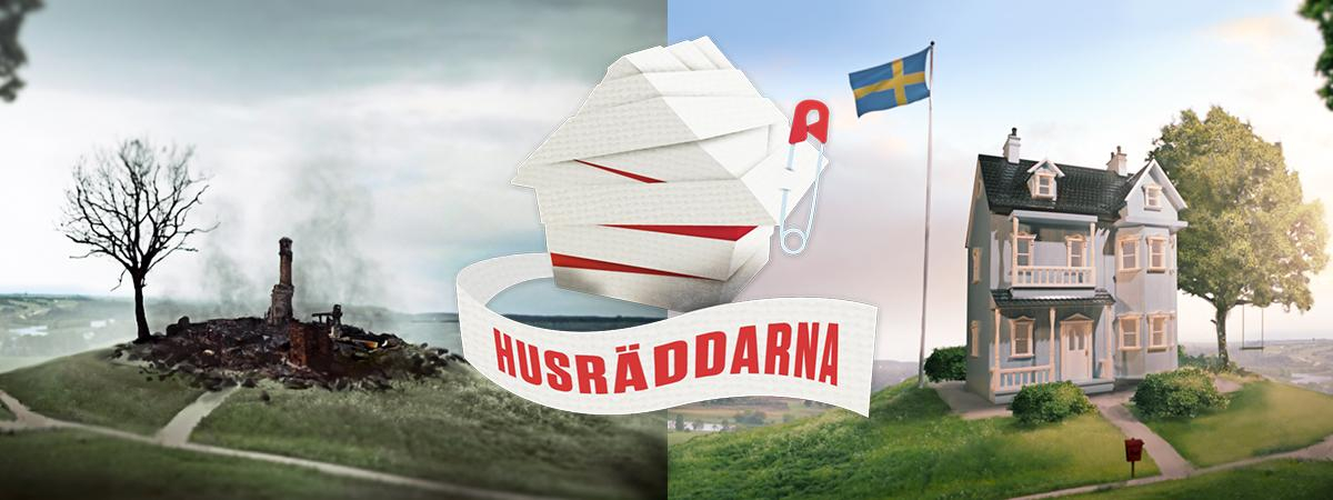 En brand innebär en tragedi för alla drabbade. Men det kan också vara starten på något nytt. I Husräddarna får sju familjer hjälp av TV3s husräddarteam att bygga upp och inreda sina hem igen efter att katastrofen varit framme. Det blir kanske inte exakt samma som innan branden, men snickaren Jonny Ljungman och inredarna Jimmy Schönning och Maria Celin gör sitt bästa för att skapa ett nytt drömhem till de drabbade familjerna. Tillsammans med försäkringsbolagets skadeingenjörer bygger teamet upp bostäderna från grunden igen. Och den här gången blir de ordentligt brandsäkrade.